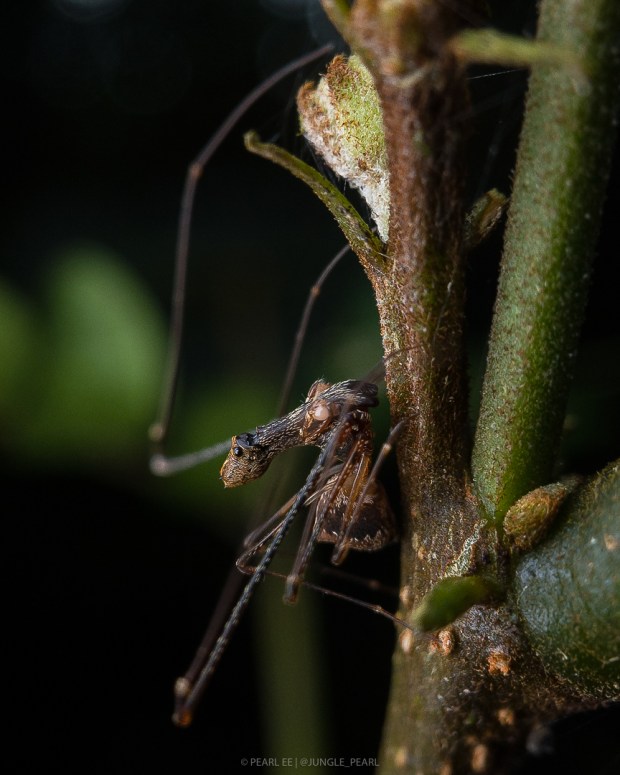What does having a narrow depth of field mean? Well, imagine having only a small strip on your camera’s screen that is in focus. If your subject happens to be an active mover, like this Pelican Spider (Eriauchenius sp.), getting most of its head and body in focus can be fairly difficult.